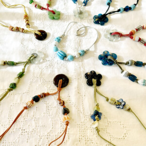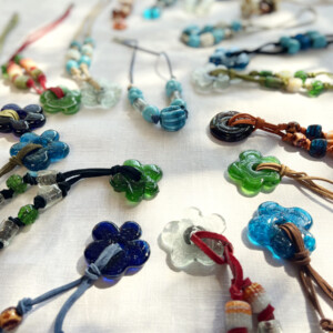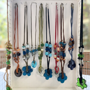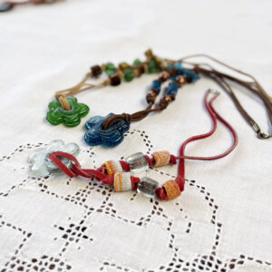 I was pleasantly surprised to recently find a stash of glass and wooden beads that I had bought during a visit to Damascus many years ago, strolling through the heart of Souk Alhamidiyeh. It was like finding a gold mine of shiny colors and textures in all sizes, which brought a flood of memories of the dizzying array of shops with locally made crafts in the old souk. I felt inspired to make necklaces with these beads. It turned out a therapeutic way to spend the winter weeks indoors.